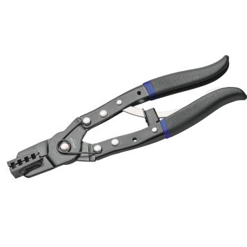 Ergonomisk slangeklemmetang med skraldemekanisme, som reducerer håndtræthed og gør det lettere at betjene tangen med én hånd. Dette er især fordelagtigt, når der arbejdes på trange områder.